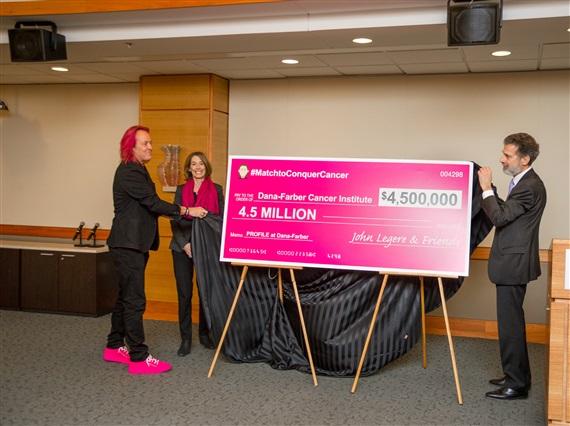T-Mobile CEO John Legere visited Dana-Farber Cancer Institute on Wednesday to present a $4.5 million check to support the Profile initiative. True to his word, Legere was sporting magenta colored hair.